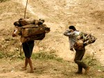 - Familias cargando agua